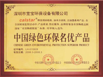 宽宝获得中国绿色环保名优产品证书 溶剂蒸馏机环保绿色产品...